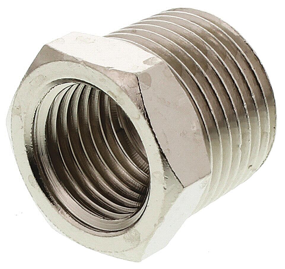 This is 0904 60 bar Brass Pneumatic Straight Threaded Adapter R 3/8 Male Female G R Male 3/8in 1/4in manufactured by Legris. The manufacturer part number is 0904 13 17. The product's body is nicely designed from brass materials. Whereas, the minimum operating temperature of the product is -10°c. It has a maximum operating temperature of +80°c.