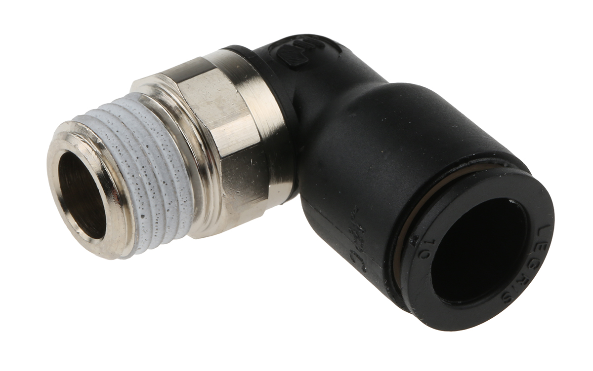 This is Pneumatic Elbow Threaded-to-Tube Adapter R 1/4 Male Push In 10 mm manufactured by Legris. The manufacturer part number is 3109 10 13. The product is available in inline configuration. The product's body is nicely designed from glass reinforced nylon materials. Whereas, the minimum operating temperature of the product is -20°c. It has a maximum operating temperature of +80°c.