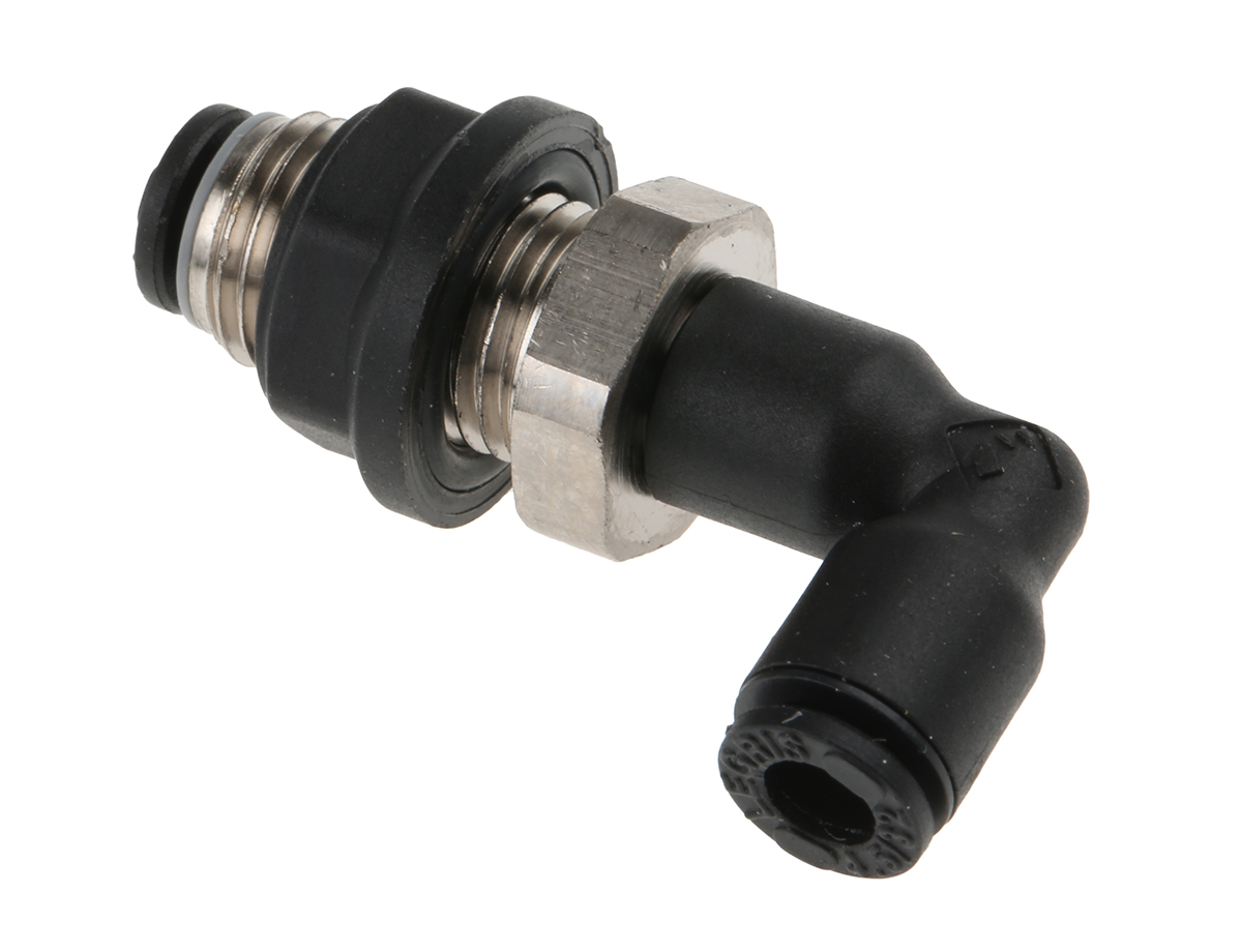 This is Pneumatic Bulkhead Tube-to-Tube Adapter Elbow Connection A 4mm B 4mm manufactured by Legris. The manufacturer part number is 3139 04 00. The given diameter of mounting hole is 10.5mm. Whereas, the minimum operating temperature of the product is -20°c. It has a maximum operating temperature of +80°c.