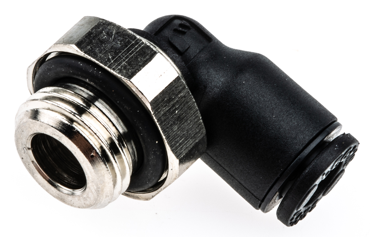 This is Pneumatic Elbow Threaded-to-Tube Adapter G 1/8 Male Push In 4 mm manufactured by Legris. The manufacturer part number is 3199 04 10. The product is available in inline configuration. The product's body is nicely designed from glass reinforced nylon materials. Whereas, the minimum operating temperature of the product is -20°c. It has a maximum operating temperature of +80°c.