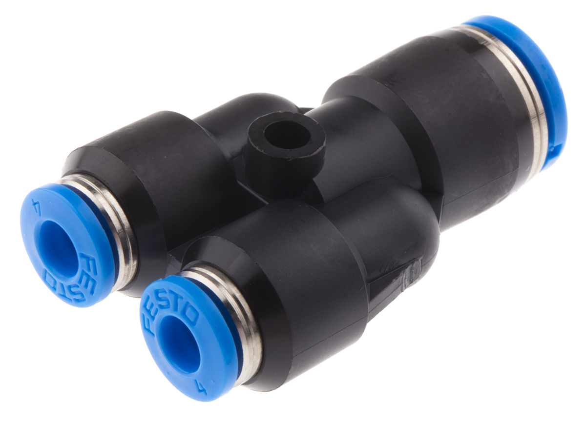 This is QSY Y Connector Push In 8 mm x Push In 4 mm x Push In 4 mm manufactured by Festo. The manufacturer part number is QSY-8-4. The product's body is nicely designed from pbt materials. Whereas, the minimum operating temperature of the product is -10°c. It has a maximum operating temperature of +80°c.