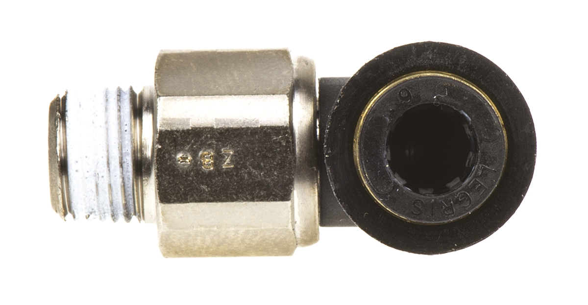This is Rotary Adapter R 1/8 Male Push In 6 mm manufactured by Legris. The manufacturer part number is 3159 06 10. The product is available in inline configuration. The product's body is nicely designed from glass reinforced nylon materials. Whereas, the minimum operating temperature of the product is -20°c. It has a maximum operating temperature of +80°c.