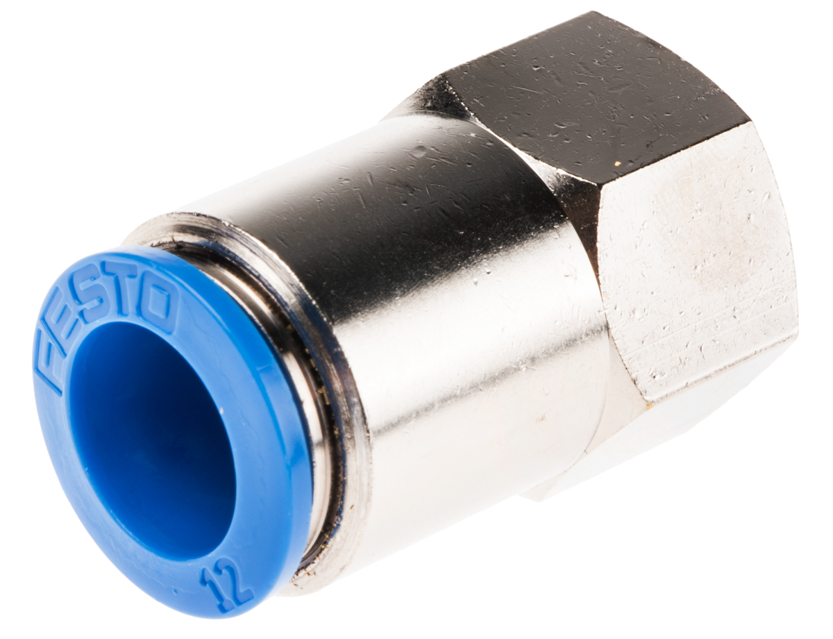 This is Pneumatic Straight Threaded-to-Tube Adapter G 3/8 Female Push In 12 mm Push In 12 mm manufactured by Festo. The manufacturer part number is QSF-3/8-12-B. A quality product with a nice nickel plated finish. The product is available in inline configuration. The product's body is nicely designed from brass materials. Whereas, the minimum operating temperature of the product is -10°c. It has a maximum operating temperature of +80°c.