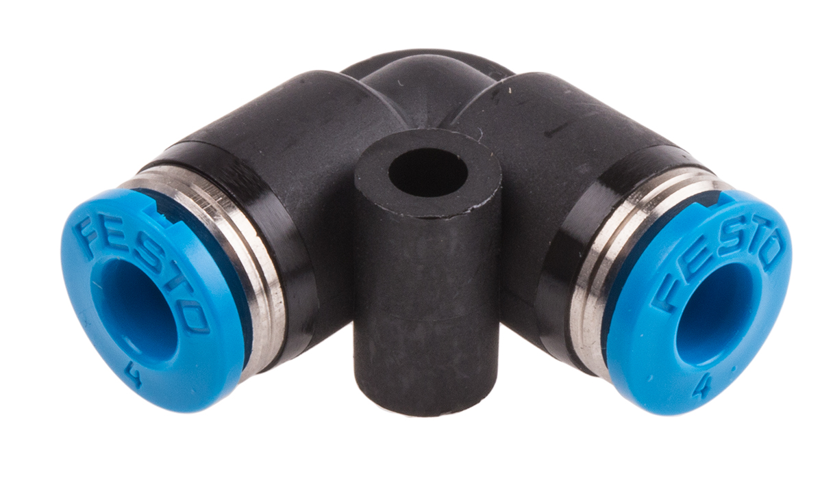 This is Pneumatic Elbow Tube-to-Tube Adapter Push In 4 mm to Push In 4 mm manufactured by Festo. The manufacturer part number is QSL-4. The product is available in inline configuration. The product's body is nicely designed from pbt materials. Whereas, the minimum operating temperature of the product is -10°c. It has a maximum operating temperature of +80°c.