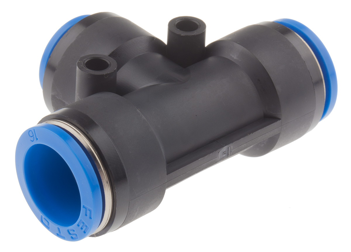 This is QST Pneumatic Tee Tube-to-Tube Adapter Push In 12 mm manufactured by Festo. The manufacturer part number is QST-16-12. A quality product with a nice nickel plated finish. The product is available in inline configuration. The product's body is nicely designed from pbt materials. Whereas, the minimum operating temperature of the product is -10°c. It has a maximum operating temperature of +80°c.