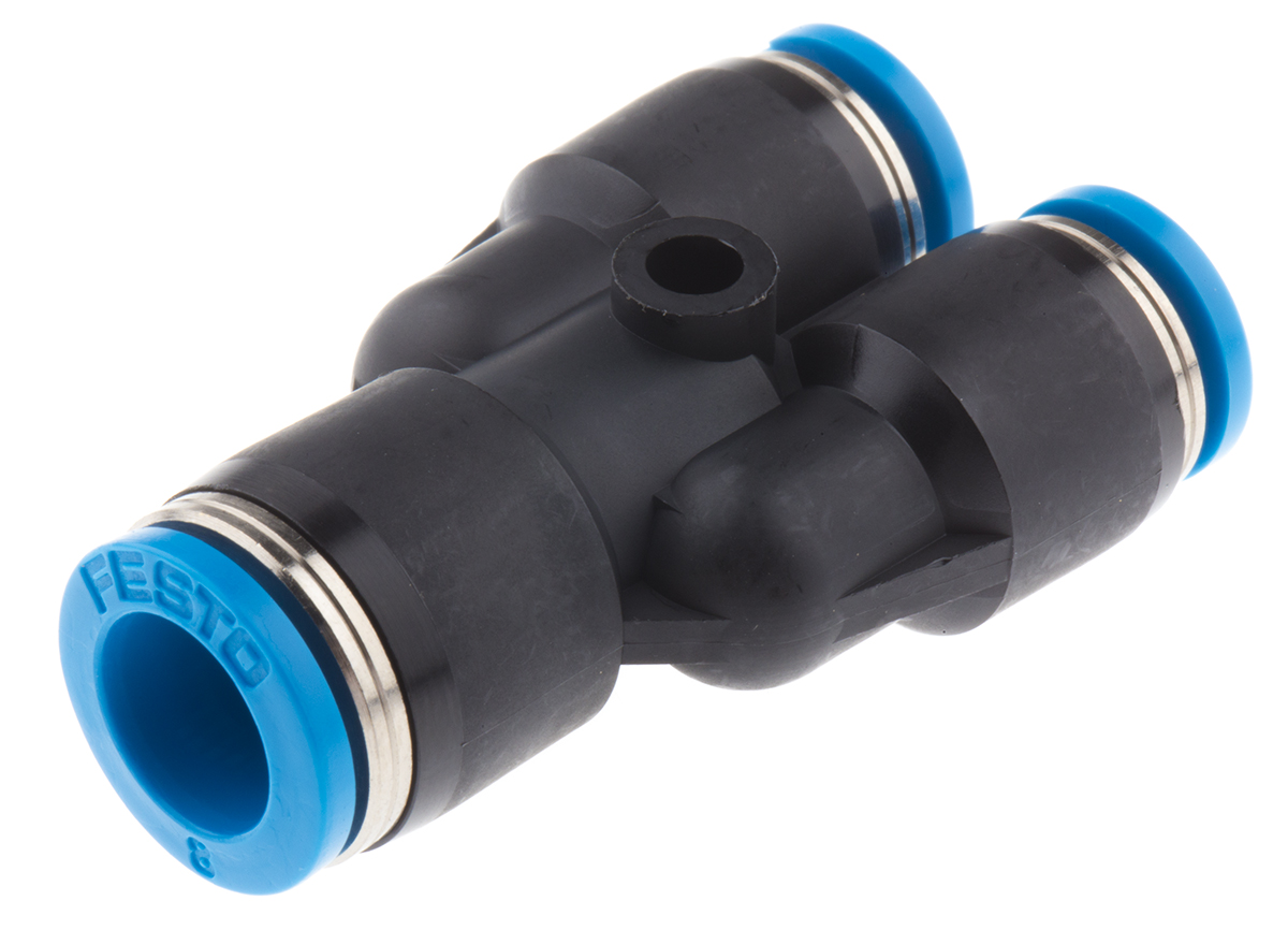 This is QSY Y Connector Push In 8 mm manufactured by Festo. The manufacturer part number is QSY-8-6. The product's body is nicely designed from pbt materials. Whereas, the minimum operating temperature of the product is -10°c. It has a maximum operating temperature of +80°c.