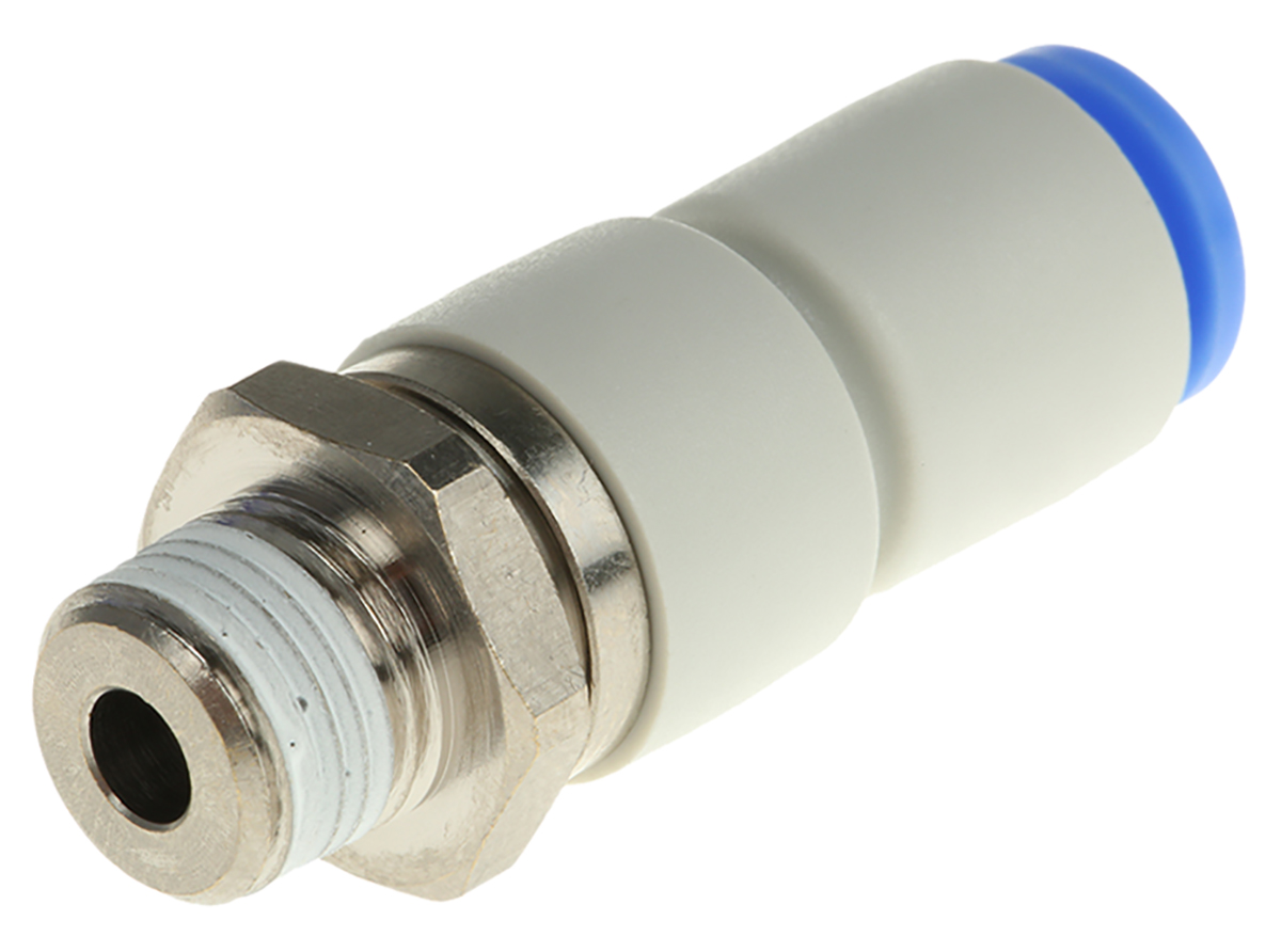 This is Pneumatic Straight Threaded-to-Tube Adapter R 1/8 Male Push In 6 mm manufactured by SMC. The manufacturer part number is KSH06-01S. The product's body is nicely designed from brass materials. Whereas, the minimum operating temperature of the product is 0°c. It has a maximum operating temperature of +60°c.