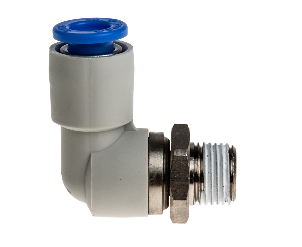 This is Rotary Adapter R 1/8 Male Push In 6 mm manufactured by SMC. The manufacturer part number is KSL06-01S. The product's body is nicely designed from pbt materials. Whereas, the minimum operating temperature of the product is -5°c. It has a maximum operating temperature of +60°c.