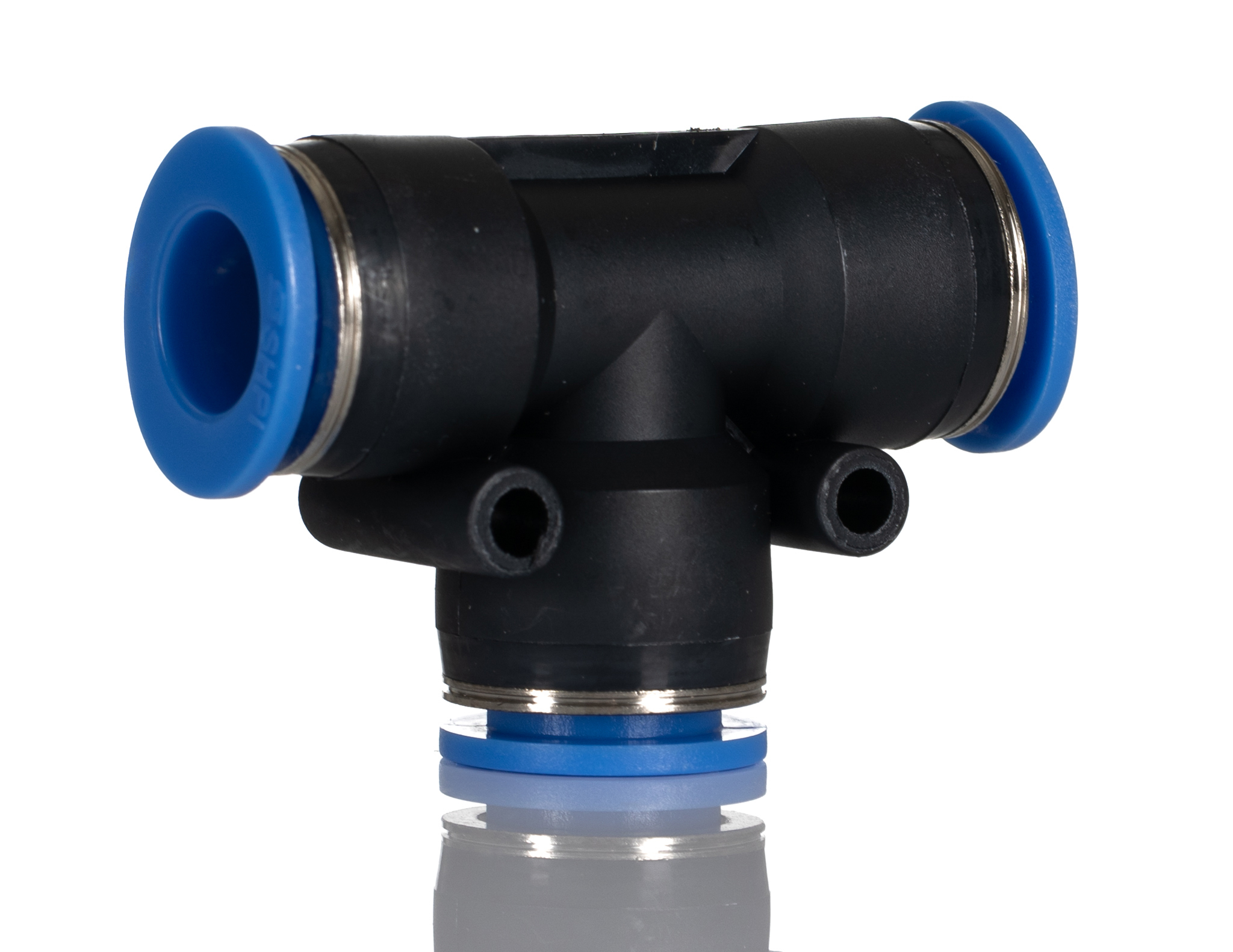This is Pneumatic Tee Tube-to-Tube Adapter Push In 4 mm x Push In 4 mm x Push In 4 mm manufactured by RS Pro. The manufacturer part number is 916-0899. A quality product with a nice nickel plated finish. The product's body is nicely designed from polyoxymethylene materials. Whereas, the minimum operating temperature of the product is 0°c. It has a maximum operating temperature of +60°c.