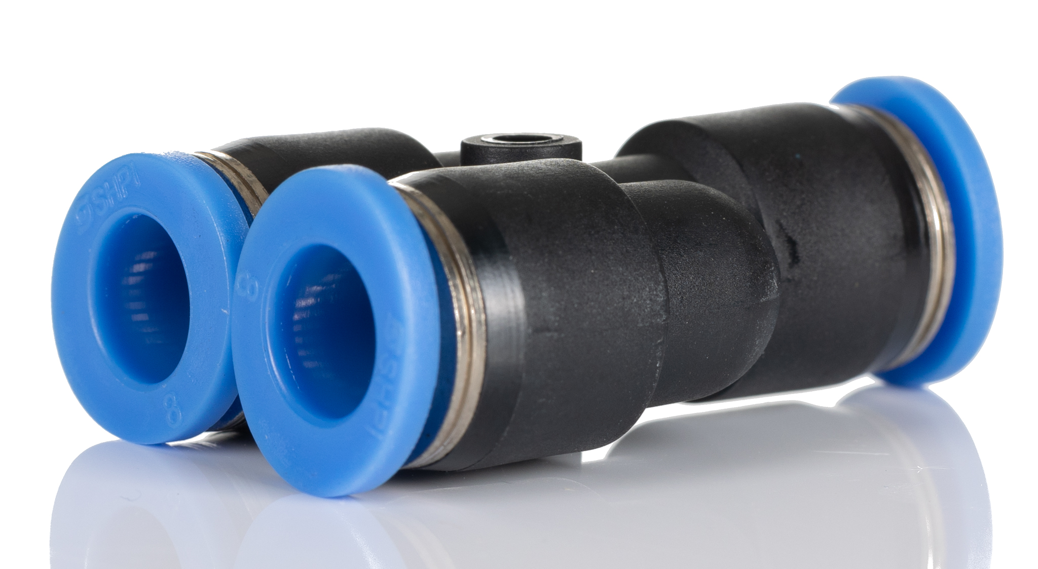 This is Pneumatic Y Tube-to-Tube Adapter Push In 8 mm x Push In 8 mm x Push In 8 mm manufactured by RS Pro. The manufacturer part number is 916-0912. A quality product with a nice nickel plated finish. The product's body is nicely designed from polyoxymethylene materials. Whereas, the minimum operating temperature of the product is 0°c. It has a maximum operating temperature of +60°c.