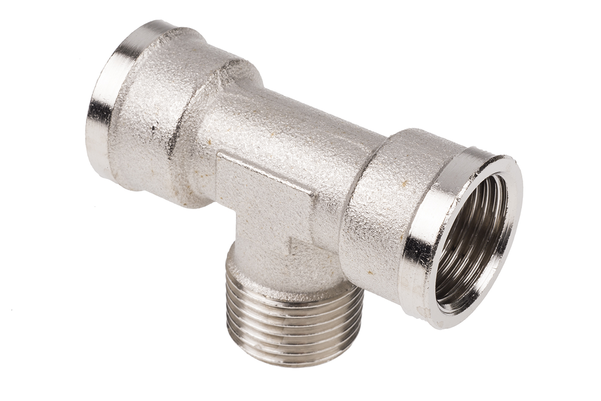 This is 0916 Brass 60 bar Pneumatic Tee Threaded Adapter G 1/2 Female R 1/2 Male manufactured by Legris. The manufacturer part number is 0916 00 21. A quality product with a nice nickel plated finish. The product's body is nicely designed from brass materials. Whereas, the minimum operating temperature of the product is -10°c. It has a maximum operating temperature of +80°c.