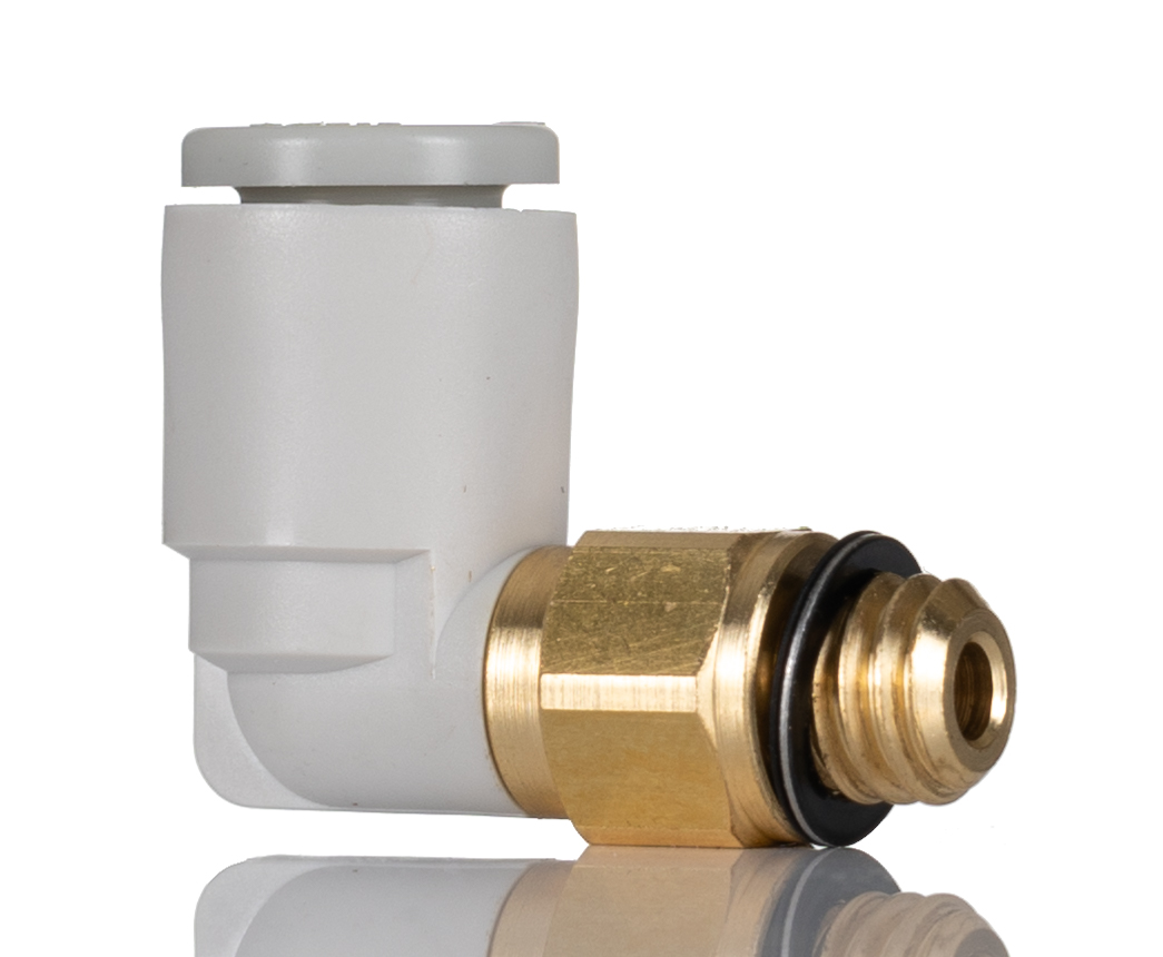 This is Pneumatic Elbow Threaded-to-Tube Adapter M6 x 1 Male Push In 6 mm manufactured by SMC. The manufacturer part number is KQ2L06-M6A. The product's body is nicely designed from pbt materials. Whereas, the minimum operating temperature of the product is -5°c. It has a maximum operating temperature of +60°c.