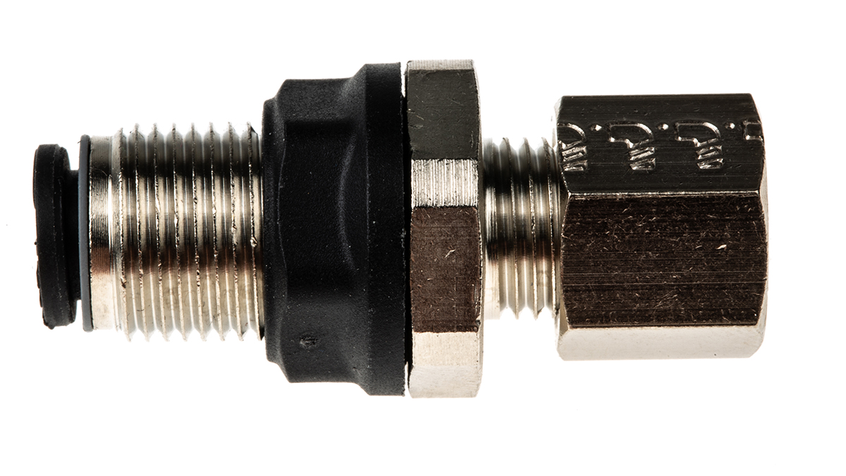 This is Pneumatic Bulkhead Tube-to-Tube Adapter Straight Push In 6 mm to Push In 6 mm manufactured by Legris. The manufacturer part number is 3146 06 00. A quality product with a nice nickel plated finish. Whereas, the minimum operating temperature of the product is -20°c. It has a maximum operating temperature of +80°c.