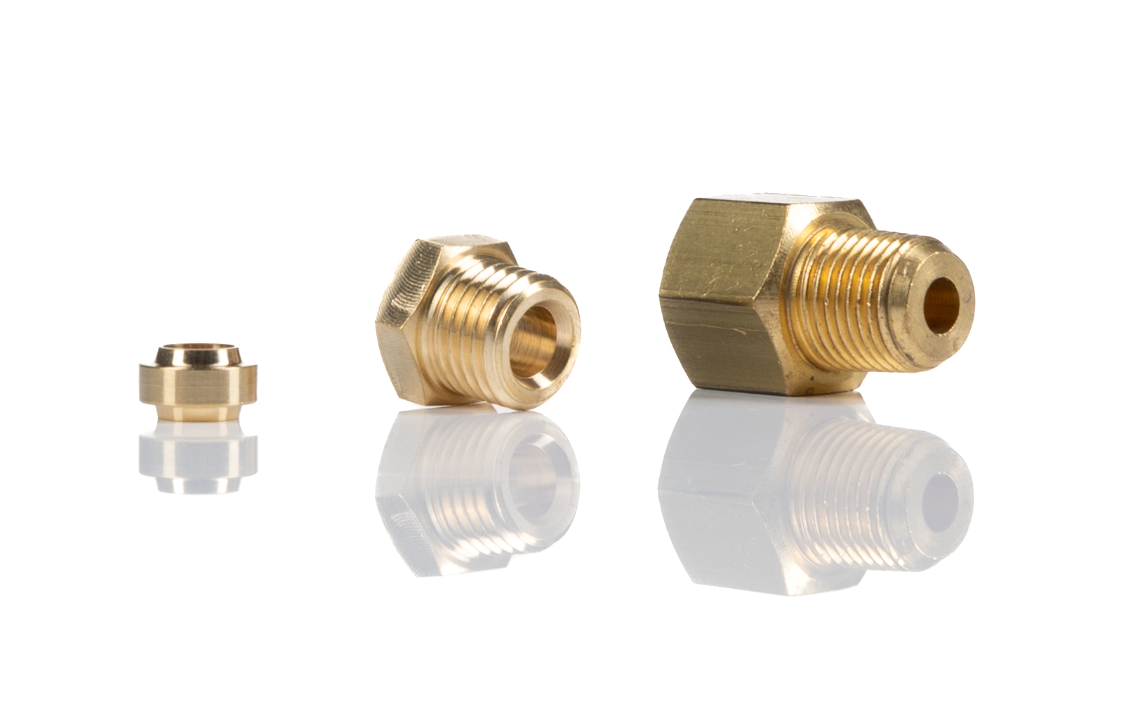 This is Pneumatic Straight Threaded-to-Tube Adapter R 1/8 Male 3/16in manufactured by Norgren. The manufacturer part number is 221250318. The product is available in inline configuration. The product's body is nicely designed from brass materials.