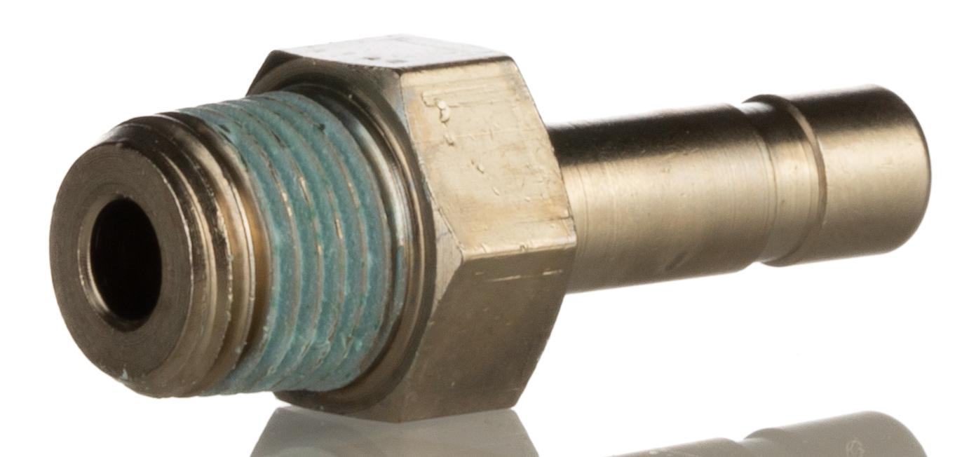 This is PNEUFIT Series Straight Threaded Adaptor R 1/8 Male to Push In 6 mm Threaded-to-Tube Connection Style manufactured by Norgren. The manufacturer part number is 101150618 DIS. A quality product with a nice nickel plated finish. The product is available in inline configuration. The product's body is nicely designed from nickel plated brass materials. Whereas, the minimum operating temperature of the product is -20°c. It has a maximum operating temperature of +80°c.