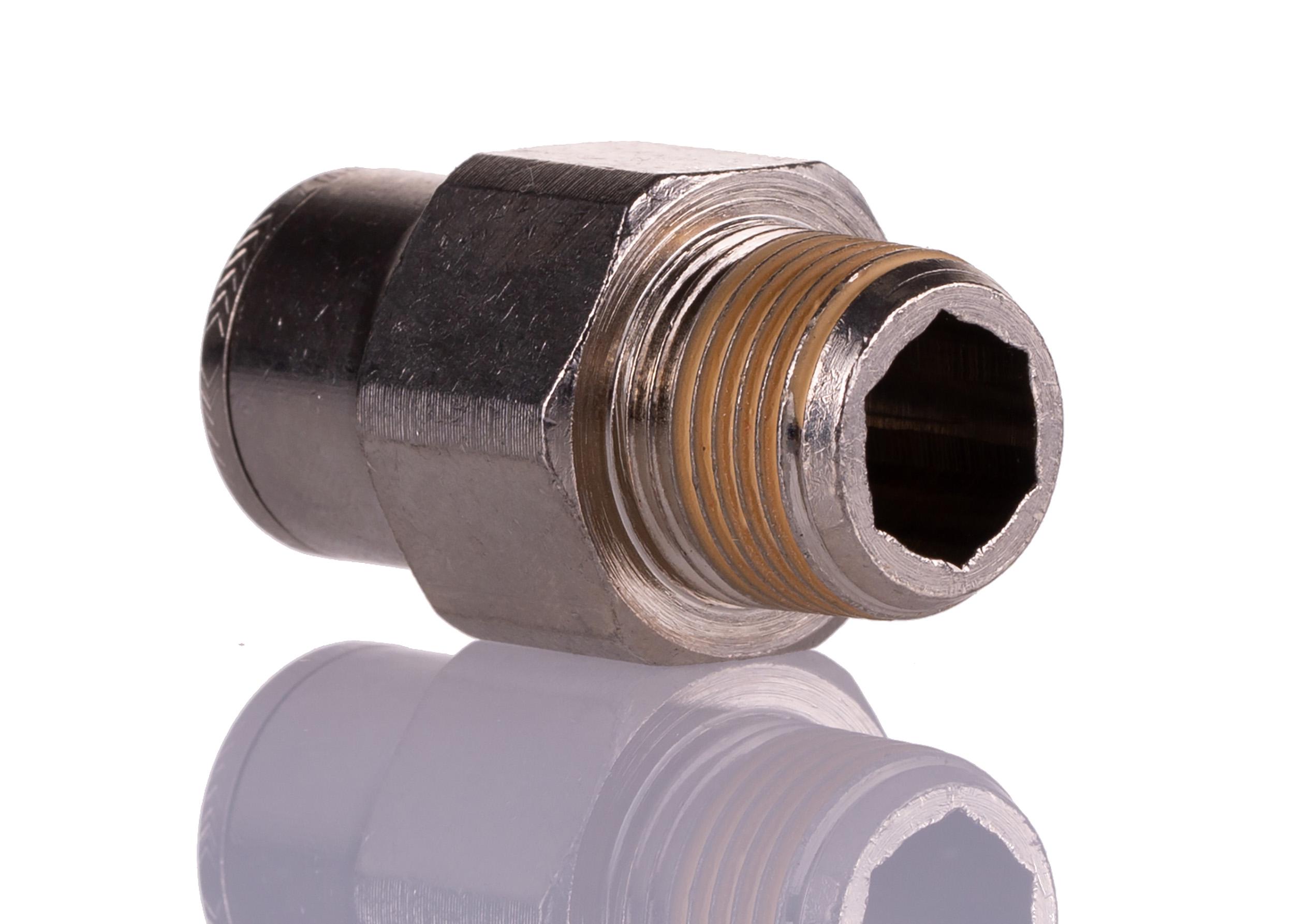 This is PNEUFIT Series Straight Threaded Adaptor R 3/8 Male to Push In 12 mm Threaded-to-Tube Connection Style manufactured by Norgren. The manufacturer part number is 101251238 DIS. A quality product with a nice nickel plated finish. The product is available in inline configuration. The product's body is nicely designed from nickel plated brass materials. Whereas, the minimum operating temperature of the product is -20°c. It has a maximum operating temperature of +80°c.