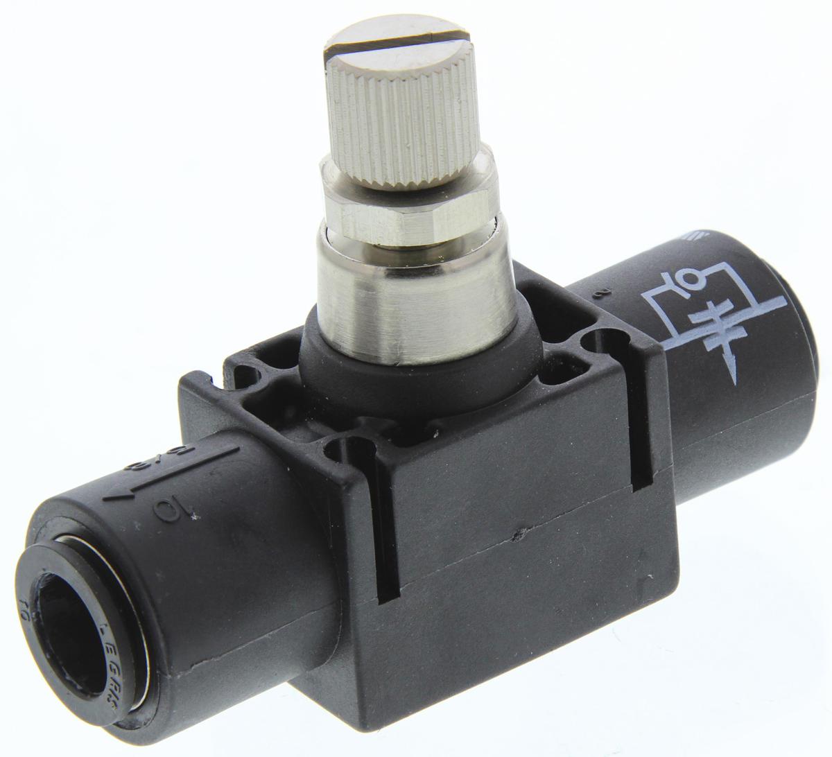 This is 7770 Series In-line Regulator 10mm Tube Inlet Port x 10mm Tube Outlet Port manufactured by Legris. The manufacturer part number is 7770 10 00. It comes in flow controller configuration.