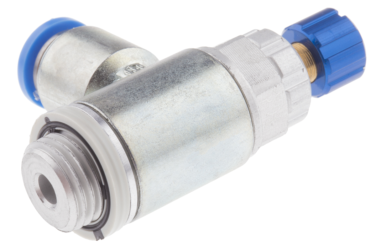 This is GRLA Series Exhaust Regulator 8mm Tube Inlet Port manufactured by Festo. The manufacturer part number is GRLA-1/4-QS-8-RS-D. The product's body is nicely designed from aluminium alloy materials. It comes in flow controller configuration.