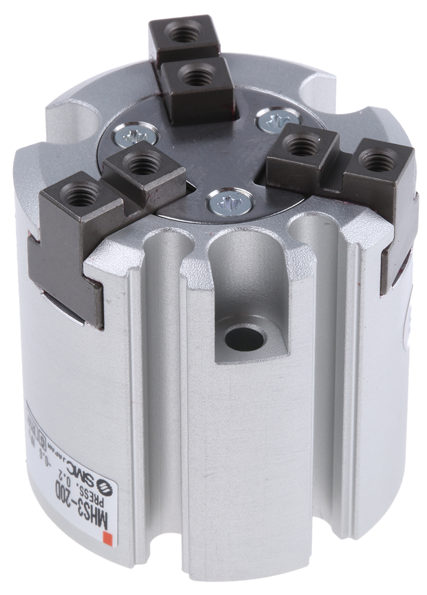 This is 3 Finger Double Action Pneumatic Gripper manufactured by SMC. The manufacturer part number is MHS3-20D. The typical product's weight is 100g.