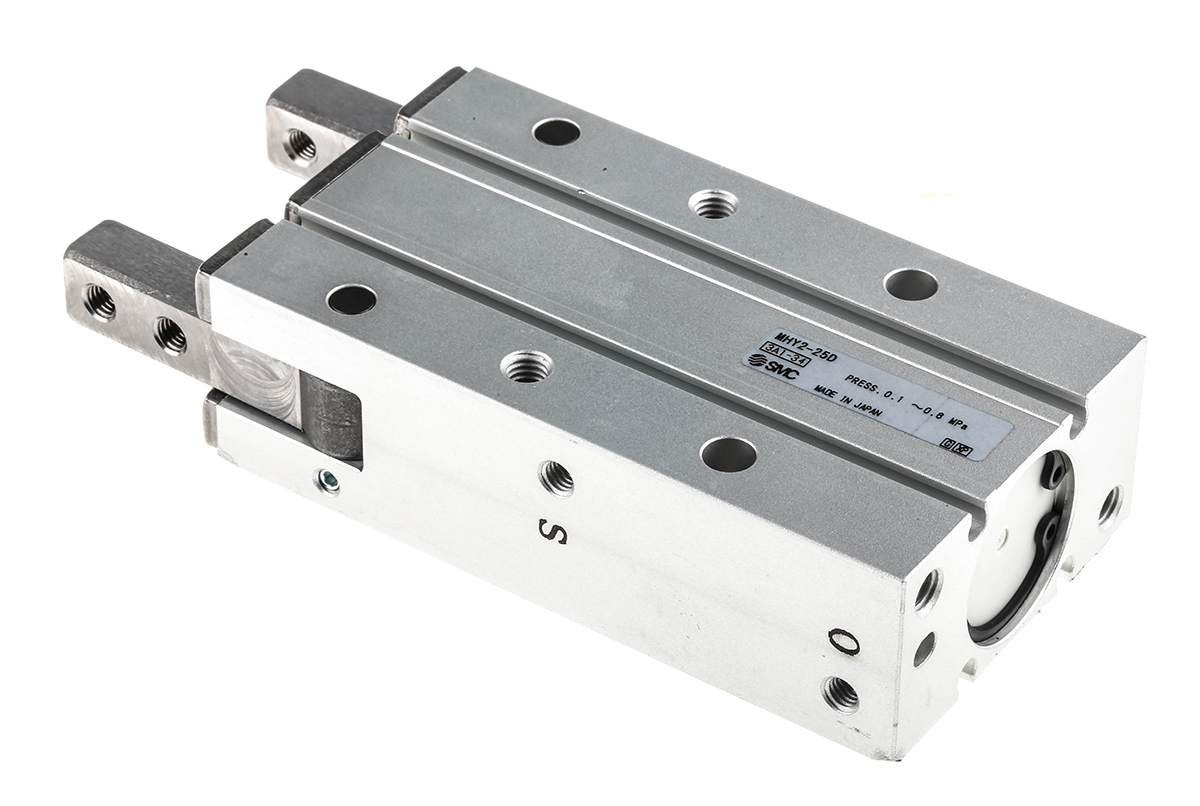 This is 2 Finger Double Action Pneumatic Gripper manufactured by SMC. The manufacturer part number is MHY2-25D. The typical product's weight is 560g.