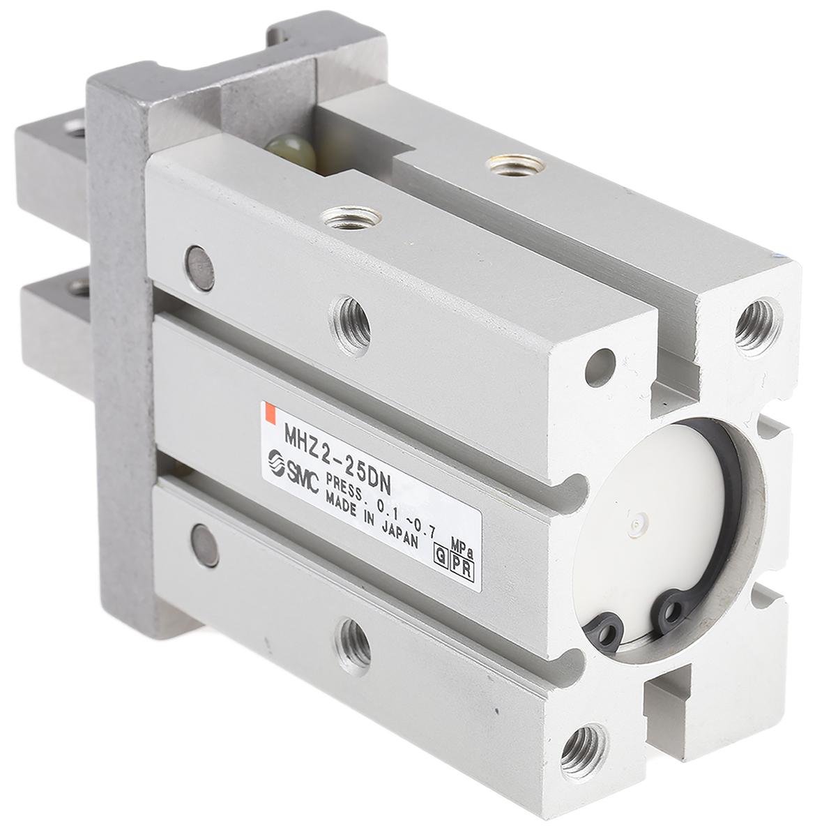This is 2 Finger Double Action Pneumatic Gripper manufactured by SMC. The manufacturer part number is MHZ2-25DN. The typical product's weight is 430g.