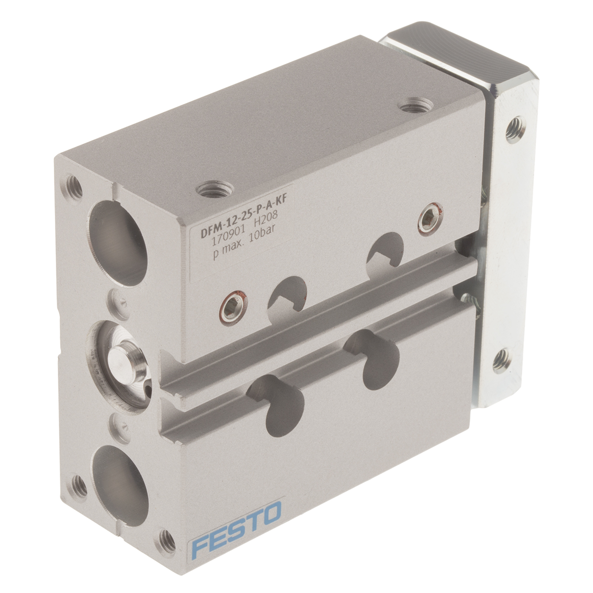 This is Pneumatic Guided Cylinder manufactured by Festo. The manufacturer part number is DFM-12-25-P-A-KF. The given dimensions of the product include 74 x 60 x 28mm. The typical product's weight is 377g. In addition, the height is 28mm. Furthermore, the product is 60mm wide. Its accurate length is 74mm. Whereas, the minimum operating temperature of the product is -5°c. It has a maximum operating temperature of +60°c.