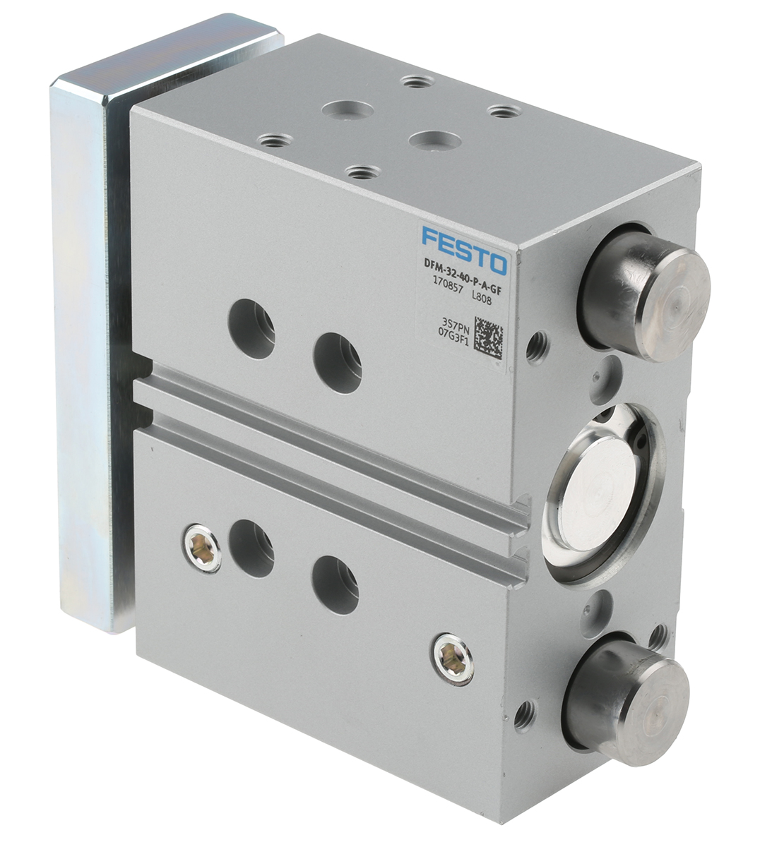 This is Pneumatic Guided Cylinder manufactured by Festo. The manufacturer part number is DFM-32-40-P-A-GF. The given dimensions of the product include 121 x 110 x 49mm. The typical product's weight is 2.1kg. In addition, the height is 49mm. Furthermore, the product is 110mm wide. Its accurate length is 121mm. Whereas, the minimum operating temperature of the product is -20°c. It has a maximum operating temperature of +80°c.