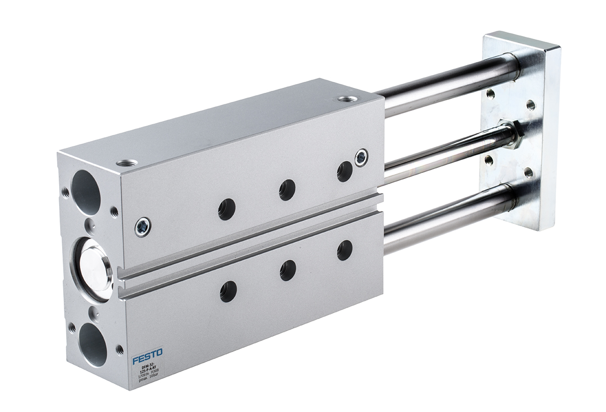 This is Pneumatic Guided Cylinder manufactured by Festo. The manufacturer part number is DFM-32-125-P-A-KF. The given dimensions of the product include 244 x 110 x 49mm. The typical product's weight is 3.6kg. In addition, the height is 49mm. Furthermore, the product is 110mm wide. Its accurate length is 244mm. Whereas, the minimum operating temperature of the product is -5°c. It has a maximum operating temperature of +60°c.