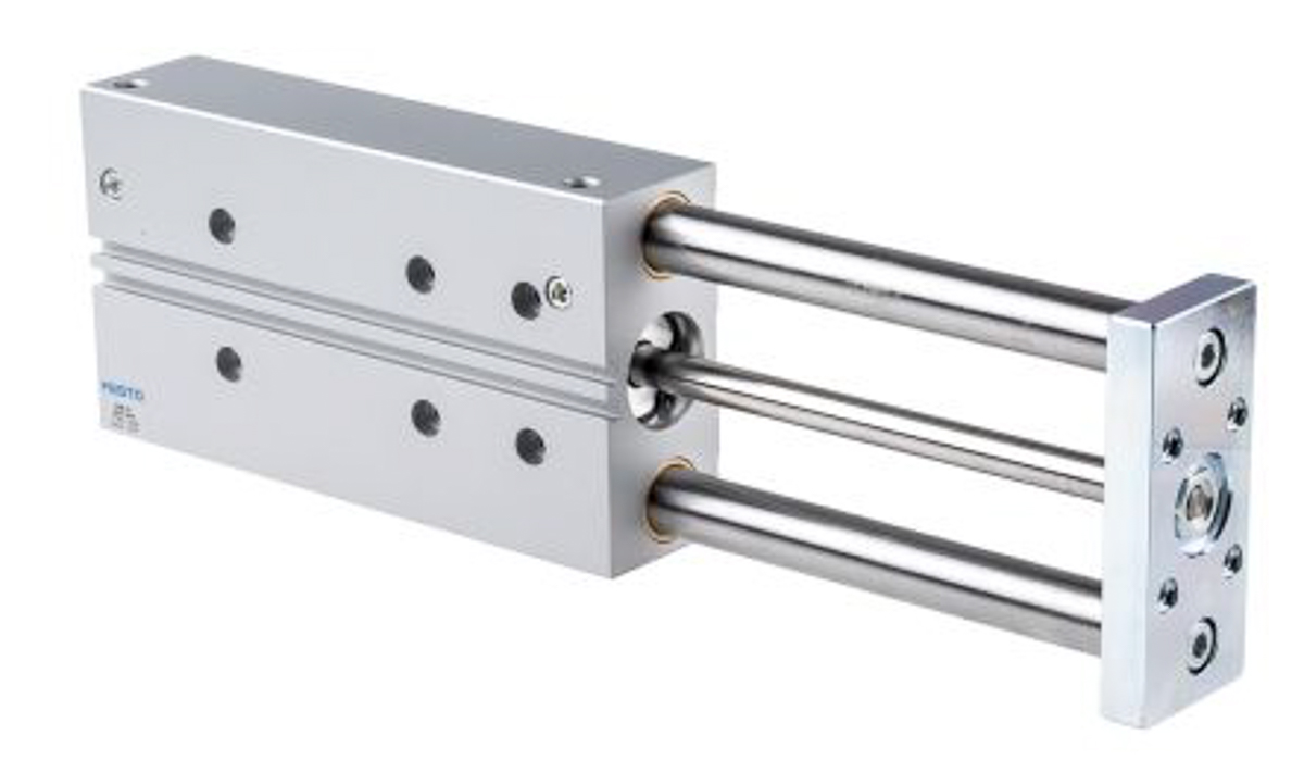 This is Pneumatic Guided Cylinder manufactured by Festo. The manufacturer part number is DFM-32-200-P-A-GF. The given dimensions of the product include 319 x 110 x 49mm. The typical product's weight is 4.8kg. In addition, the height is 49mm. Furthermore, the product is 110mm wide. Its accurate length is 319mm. Whereas, the minimum operating temperature of the product is -20°c. It has a maximum operating temperature of +80°c.