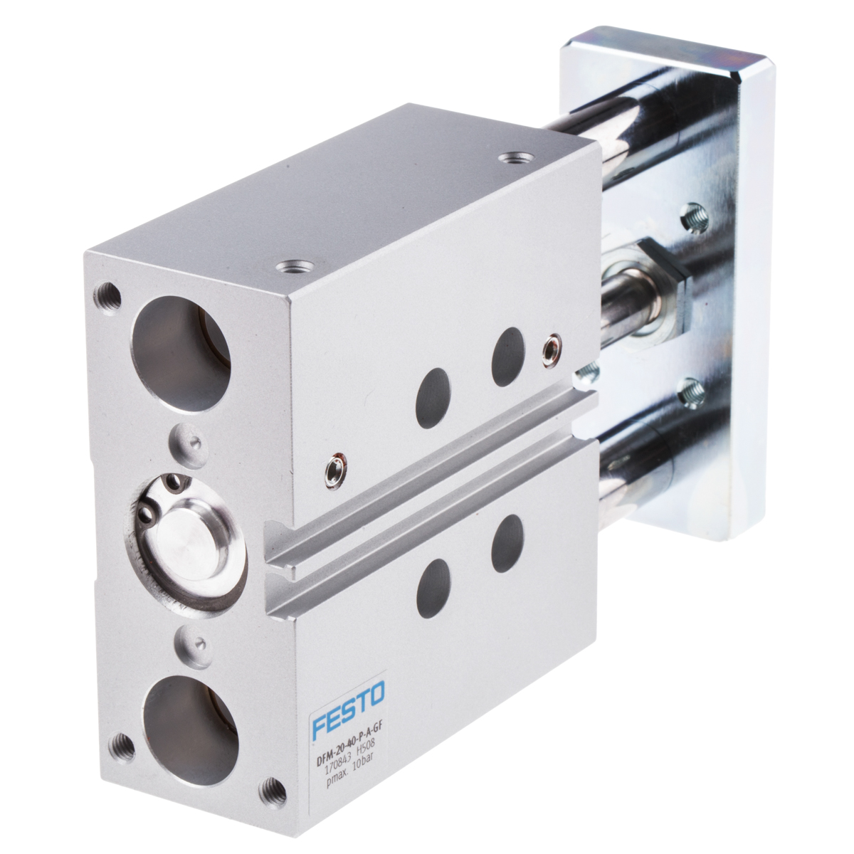 This is Pneumatic Guided Cylinder manufactured by Festo. The manufacturer part number is DFM-20-40-P-A-GF. The given dimensions of the product include 121 x 83 x 36mm. The typical product's weight is 1.1kg. In addition, the height is 36mm. Furthermore, the product is 83mm wide. Its accurate length is 121mm. Whereas, the minimum operating temperature of the product is -20°c. It has a maximum operating temperature of +80°c.