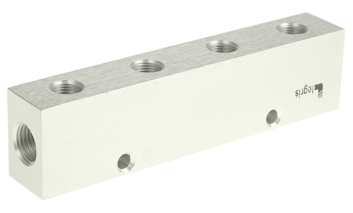 This is 8 Outlet Pneumatic Manifold Threaded Fitting G 1/4 G 1/8 manufactured by Legris. The manufacturer part number is 3313 10 13 04. The product is made from highly stable and reliable anodised aluminium. Whereas, the minimum operating temperature of the product is -10°c. It has a maximum operating temperature of +80°c.
