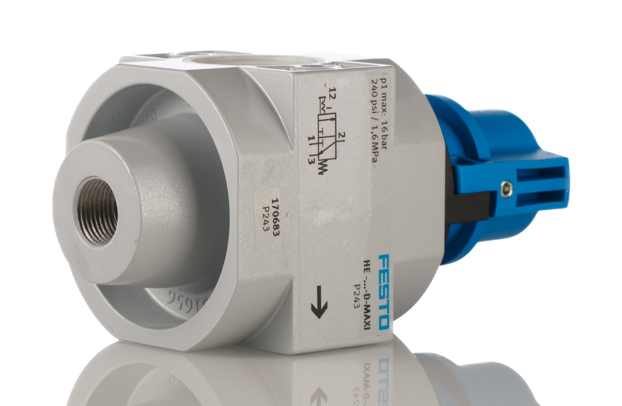 This is 3/2 Bistable Pneumatic Control Valve HE Series manufactured by Festo. The manufacturer part number is HE-D-MAXI. It performs basic function of 3/2 bistable. It has a typical thread size of 3/8. This product features 3 number of ports. The product's body is nicely designed from die cast aluminium materials. Whereas, the minimum operating temperature of the product is -10°c. It has a maximum operating temperature of +60°c. The product carries possible position value of 2.