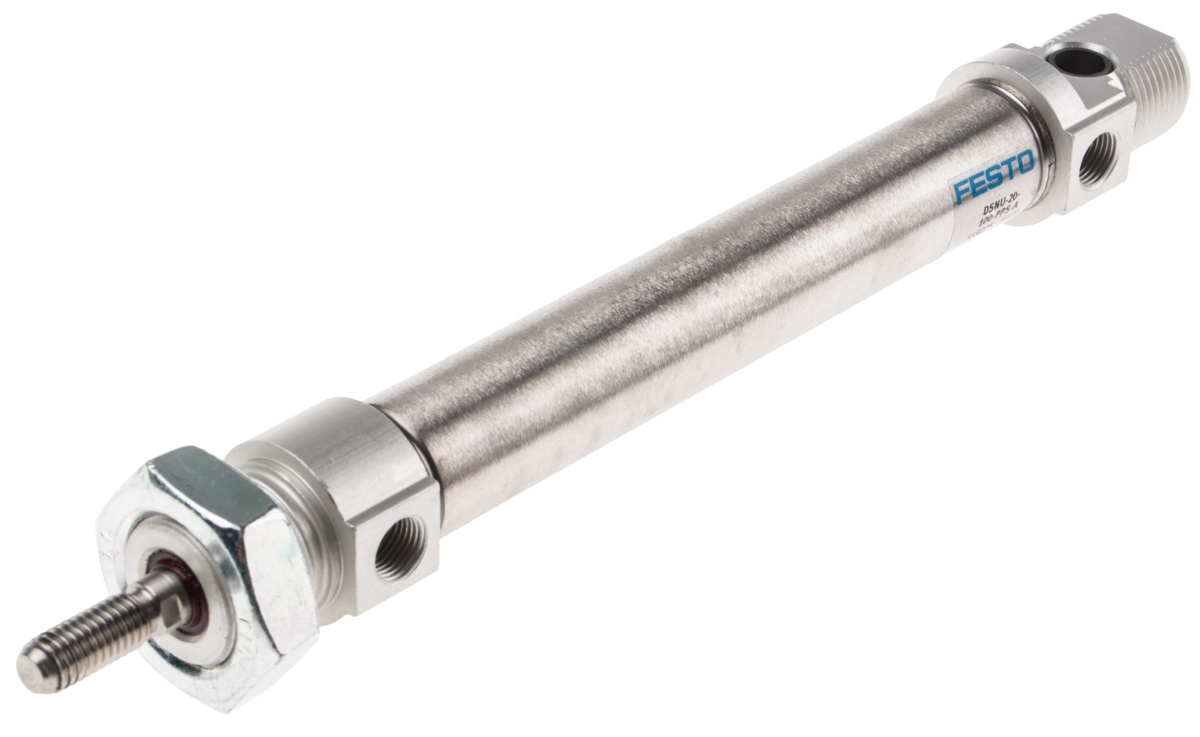 This is Double Action Pneumatic Roundline Cylinder manufactured by Festo. The manufacturer part number is DSNU-20-100-PPS-A. Its diameter is 27mm. The given dimensions of the product include 27 x 232mm. The typical product's weight is 258.8g. Its accurate length is 232mm. Whereas, the minimum operating temperature of the product is -20°c. It has a maximum operating temperature of +80°c.