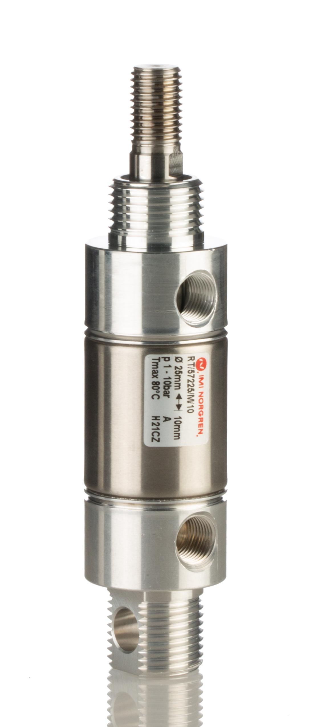 This is Double Action Pneumatic Roundline Cylinder manufactured by Norgren. The manufacturer part number is RT/57225/M/10. Its diameter is 26.5mm. The given dimensions of the product include 26.5 (dia.) x 88.5mm. Its accurate length is 88.5mm. Whereas, the minimum operating temperature of the product is -10°c. It has a maximum operating temperature of +80°c.