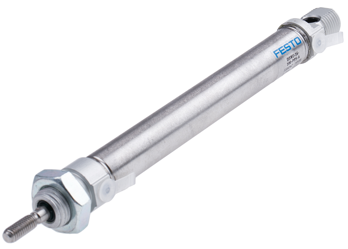 This is Double Action Pneumatic Roundline Cylinder manufactured by Festo. The manufacturer part number is DSNU-16-100-PPS-A. Its diameter is 20mm. The given dimensions of the product include 20 x 211mm. The typical product's weight is 135.9g. Its accurate length is 211mm. Whereas, the minimum operating temperature of the product is -20°c. It has a maximum operating temperature of +80°c.