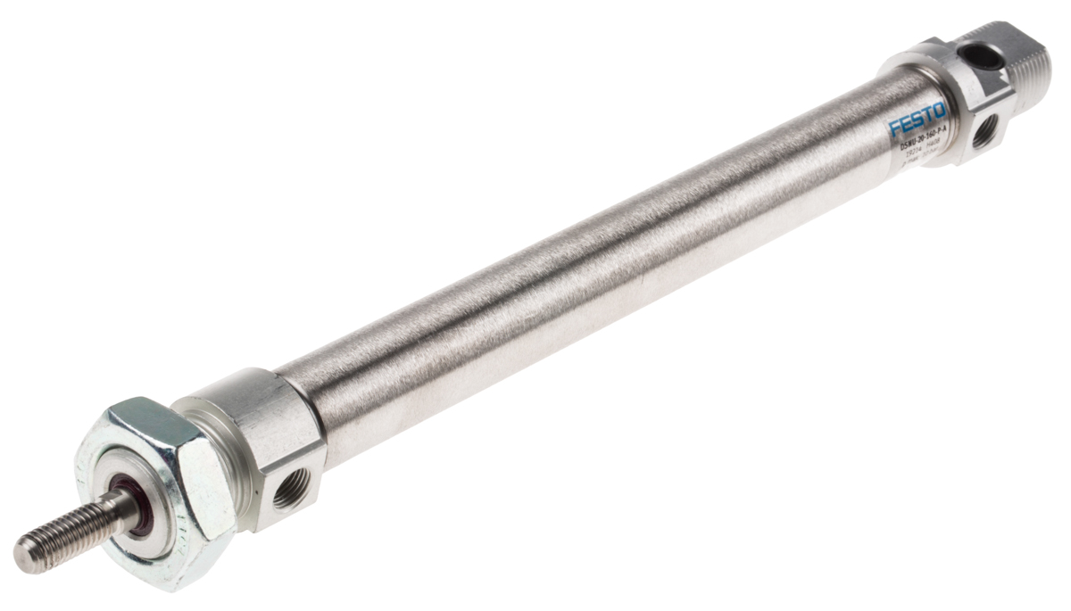 This is Double Action Pneumatic Roundline Cylinder manufactured by Festo. The manufacturer part number is DSNU-20-160-P-A. Its diameter is 27mm. The given dimensions of the product include 27 x 292mm. The typical product's weight is 302g. Its accurate length is 292mm. Whereas, the minimum operating temperature of the product is -20°c. It has a maximum operating temperature of +80°c.