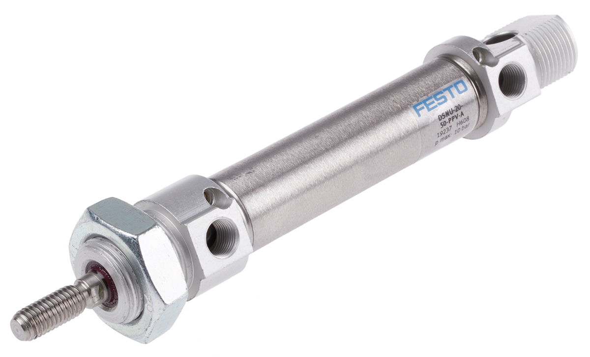 This is Double Action Pneumatic Roundline Cylinder manufactured by Festo. The manufacturer part number is DSNU-20-50-PPV-A. Its diameter is 27mm. The given dimensions of the product include 27 x 182mm. The typical product's weight is 222.8g. Its accurate length is 182mm. Whereas, the minimum operating temperature of the product is -20°c. It has a maximum operating temperature of +80°c.