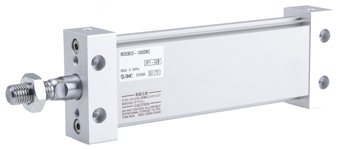 This is Pneumatic Multi-Mount Cylinder MU Series Double Action Single Rod 25mm Bore 100mm stroke manufactured by SMC. The manufacturer part number is MDUB25-100DM. The given dimensions of the product include 191 x 24 x 54mm. The typical product's weight is 170g. Its accurate length is 191mm. In addition, the height is 54mm. Furthermore, the product is 24mm wide. Whereas, the minimum operating temperature of the product is -10°c. It has a maximum operating temperature of +60°c.