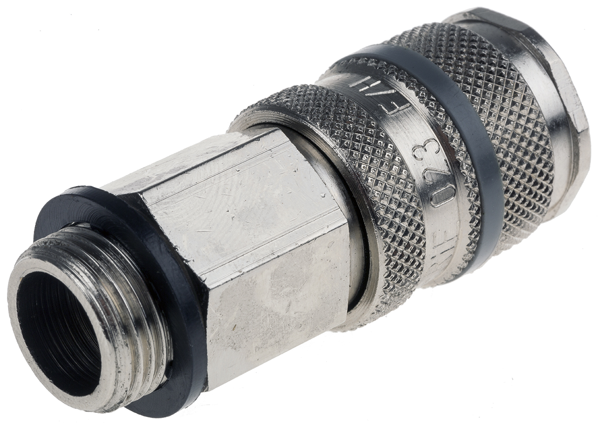 This is Brass Pneumatic Quick Connect Coupling R 3/8 Male Threaded manufactured by RS Pro. The manufacturer part number is 667-1872. A quality product with a nice nickel plated finish. The product is made from highly stable and reliable brass. It has a typical thread size of 3/8in. Whereas, the minimum operating temperature of the product is -20°c. It has a maximum operating temperature of +100°c.