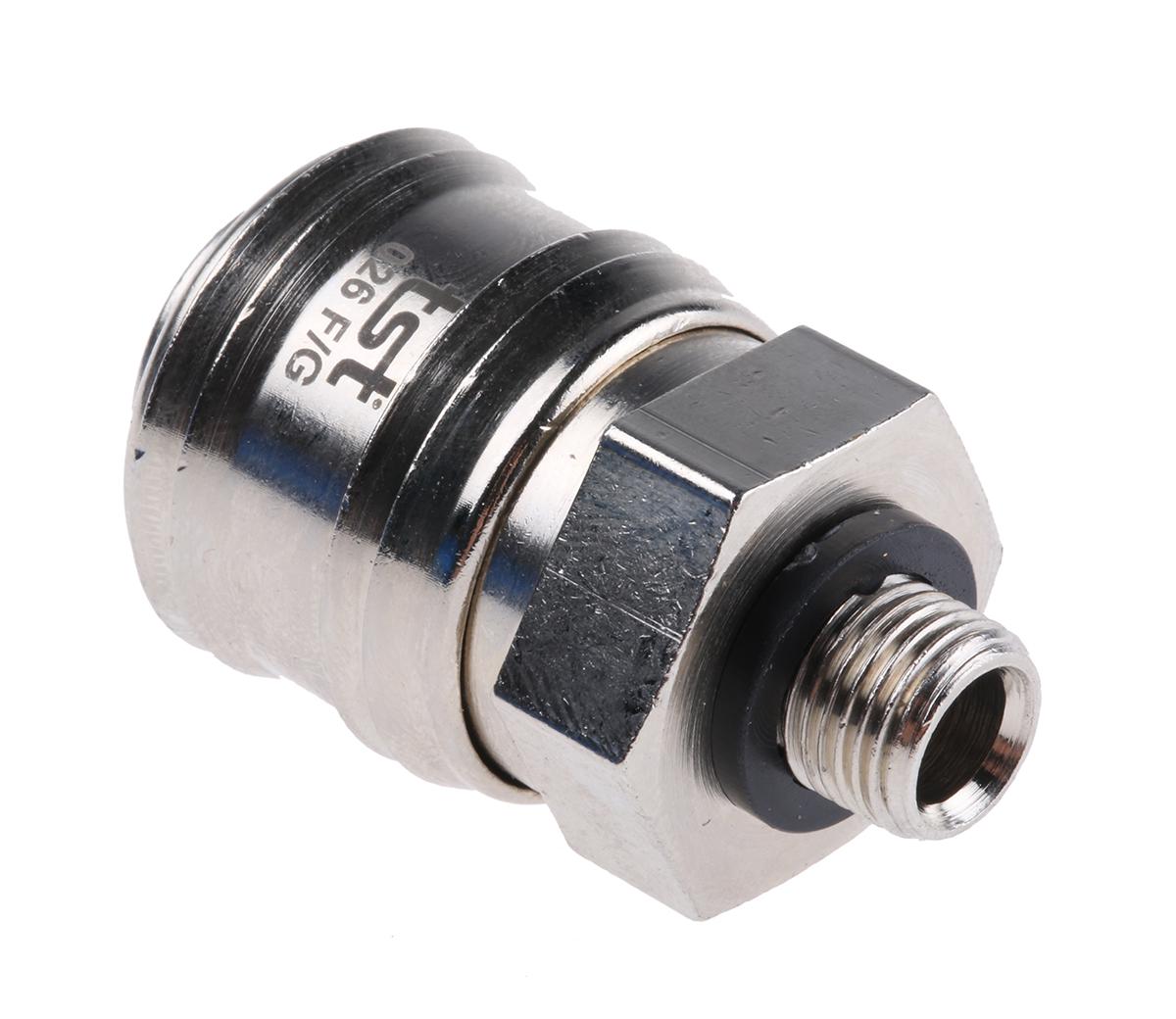 This is Brass Pneumatic Quick Connect Coupling G 1/8 Male Threaded manufactured by RS Pro. The manufacturer part number is 667-1986. A quality product with a nice nickel plated finish. The product is made from highly stable and reliable brass. It has a typical thread size of 1/8in. Whereas, the minimum operating temperature of the product is -20°c. It has a maximum operating temperature of +100°c.