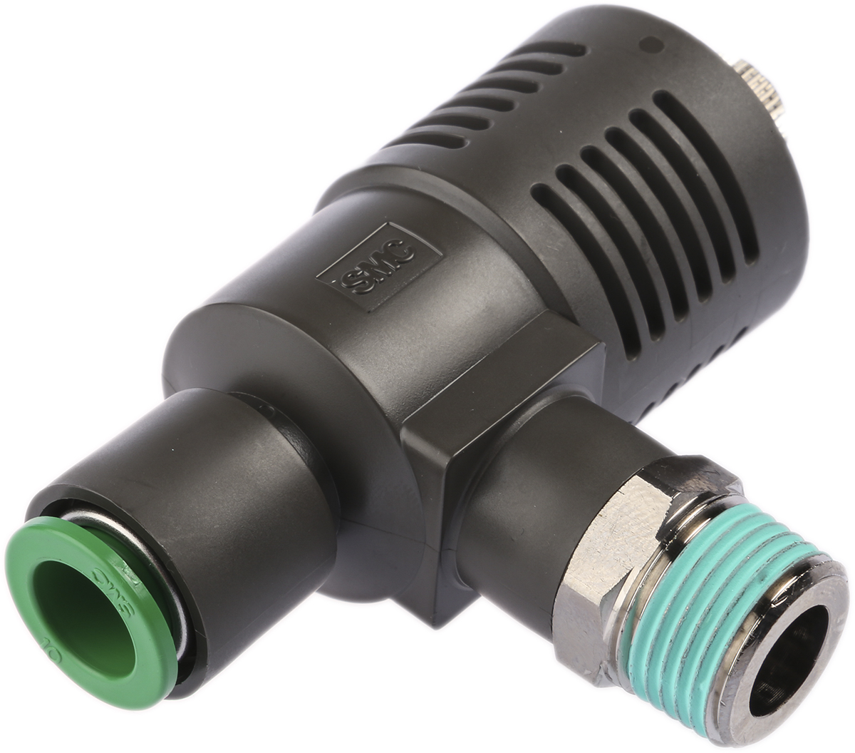 This is Adjustable Exhaust Valve 3/8 in R 3/8 Male x10mm manufactured by SMC. The manufacturer part number is ASV510F-03-10S.