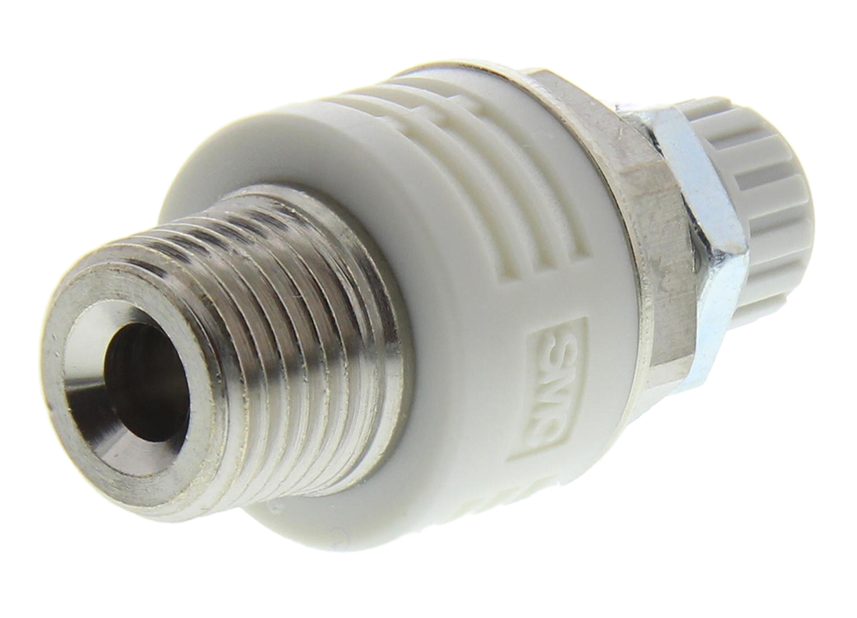 This is ASN2 Brass 1.5Mpa Exhaust Restrictor Threaded R 1/8 Male manufactured by SMC. The manufacturer part number is ASN2-01. It has a maximum operating temperature of +60°c. The product is made from highly stable and reliable brass. Whereas, the minimum operating temperature of the product is -5°c. It comes in silencer configuration.