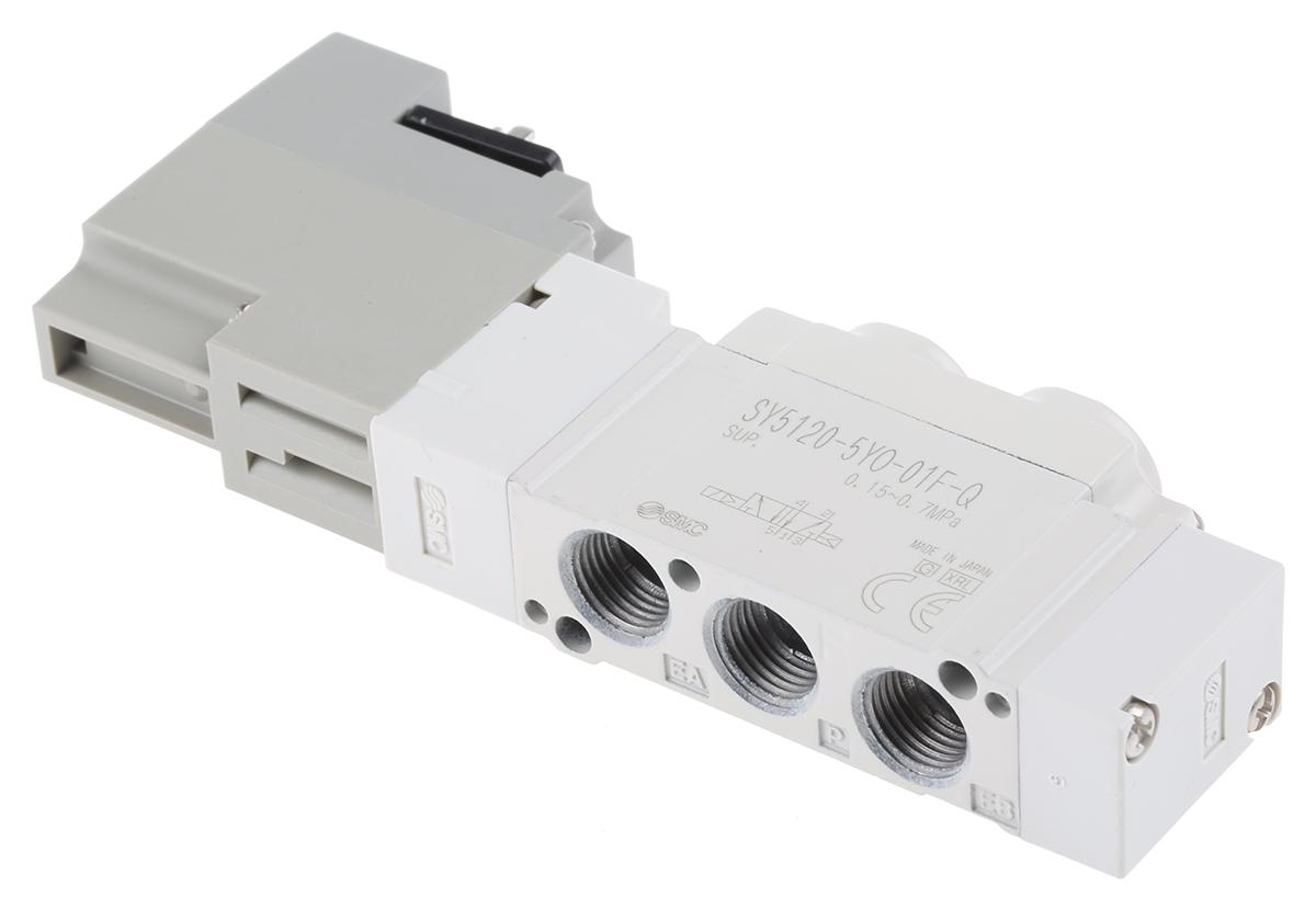 This is SY5000 G 1/8 5/2 Solenoid/Pilot Stand-Alone Pneumatic Control Valve 579nl/min manufactured by SMC. The manufacturer part number is SY5120-5YO-01F-Q. It performs basic function of 5/2. Whereas, the minimum operating temperature of the product is -10°c. It has a typical thread size of 1/8in. This product features 5/2 number of ports. The product's body is nicely designed from die cast aluminium materials. It has a maximum operating temperature of +50°c.