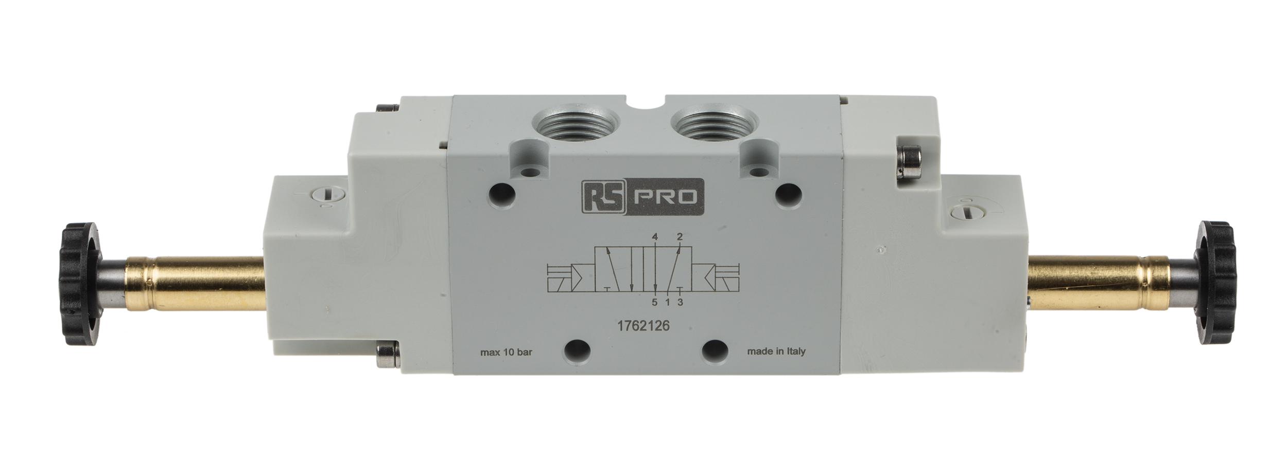 This is SOLENOID PILOT VALVE - double action 5/2 manufactured by RS Pro. The manufacturer part number is 176-2126. It performs basic function of 5/2 bistable. Whereas, the minimum operating temperature of the product is -10°c. It has a typical thread size of 1/4in. This product features 5/2 number of ports. The product's body is nicely designed from aluminium materials. The product is available in 5/2 configuration. It has a maximum operating temperature of +60°c. The product carries possible position value of 2.
