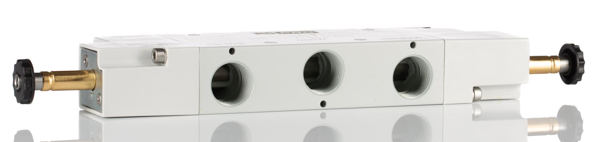 This is SOLENOID PILOT VALVE - double action 5/2 manufactured by RS Pro. The manufacturer part number is 176-2127. It performs basic function of 5/2 bistable. Whereas, the minimum operating temperature of the product is -10°c. It has a typical thread size of 1/2in. This product features 5/2 number of ports. The product's body is nicely designed from aluminium materials. The product is available in 5/2 configuration. It has a maximum operating temperature of +60°c. The product carries possible position value of 2.
