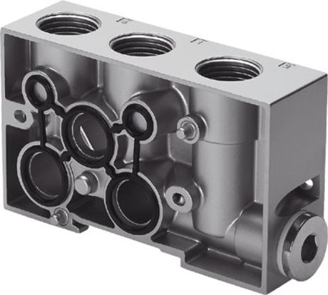 This is Supply Sub Base manufactured by Festo. The manufacturer part number is NZV-01/02-VDMA. It is a type of sub base accessory.