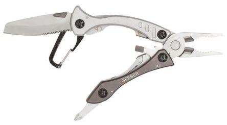 This is 140 mm Stainless Steel Multi-tool with Various Features manufactured by Gerber. The manufacturer part number is 22-31-000014. This is basically a useful and handy multi-tool. The splendid features of the product include pliers; v-cut wire cutters; flat and crosshead screwdrivers; bottle opener/carabiner clip; part serrated/fine edge blade with blunt tip for scraping and prying.