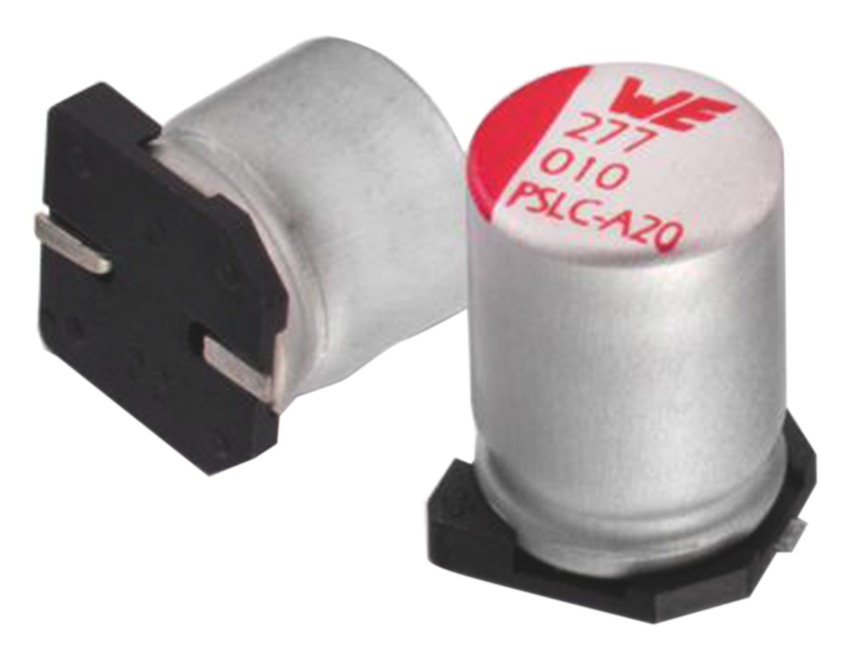 This is Aluminium Polymer Capacitor 820μF 16V dc 12.4mm V-Chip WCAP-PSLC Series Aluminium Surface Mount manufactured by Wurth Elektronik. The manufacturer part number is 875075361007. Its diameter is 12.4mm. The given dimensions of the product include 12.4 (dia) x 10mm. The product is available in surface mount configuration. The product wcap-pslc, is a highly preferred choice for users. Whereas, the minimum operating temperature of the product is -55°c. In addition, the height is 9.85mm. It provides a 820µf of capacitance value. Its accurate length is 10mm. It carries a 16v dc of voltage. It has a maximum operating temperature of +105°c. It features ±20% of tolerance value. This product use polymer technology.