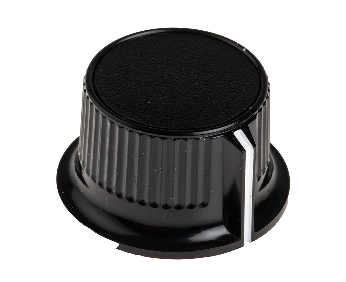This is Potentiometer Knob Body: Black for use with knob Dia. 28mm with a White Indicator 6mm Shaft manufactured by RS Pro. The manufacturer part number is 259-7039. The product is made from highly stable and reliable plastic.