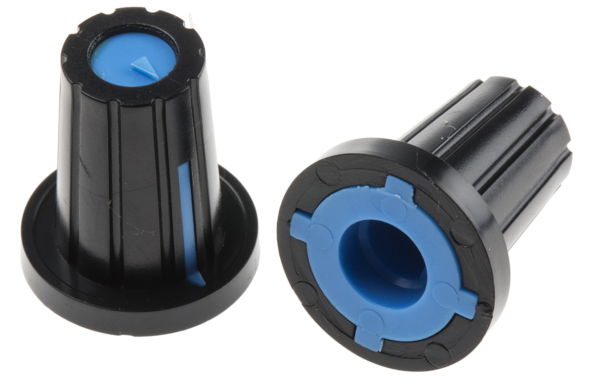 This is Potentiometer Knob Body: Black for use with knob Dia. 17mm with a Blue Indicator 6mm Shaft manufactured by RS Pro. The manufacturer part number is 467-6049. The product is made from highly stable and reliable plastic. The product comes in 15.3mm depth.